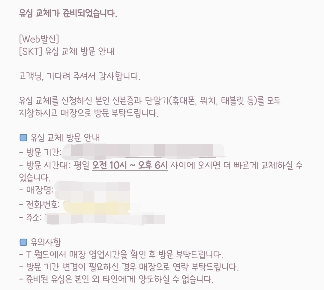 기다리던 끝에 드디어 유심교체 문자가 왔습니다!