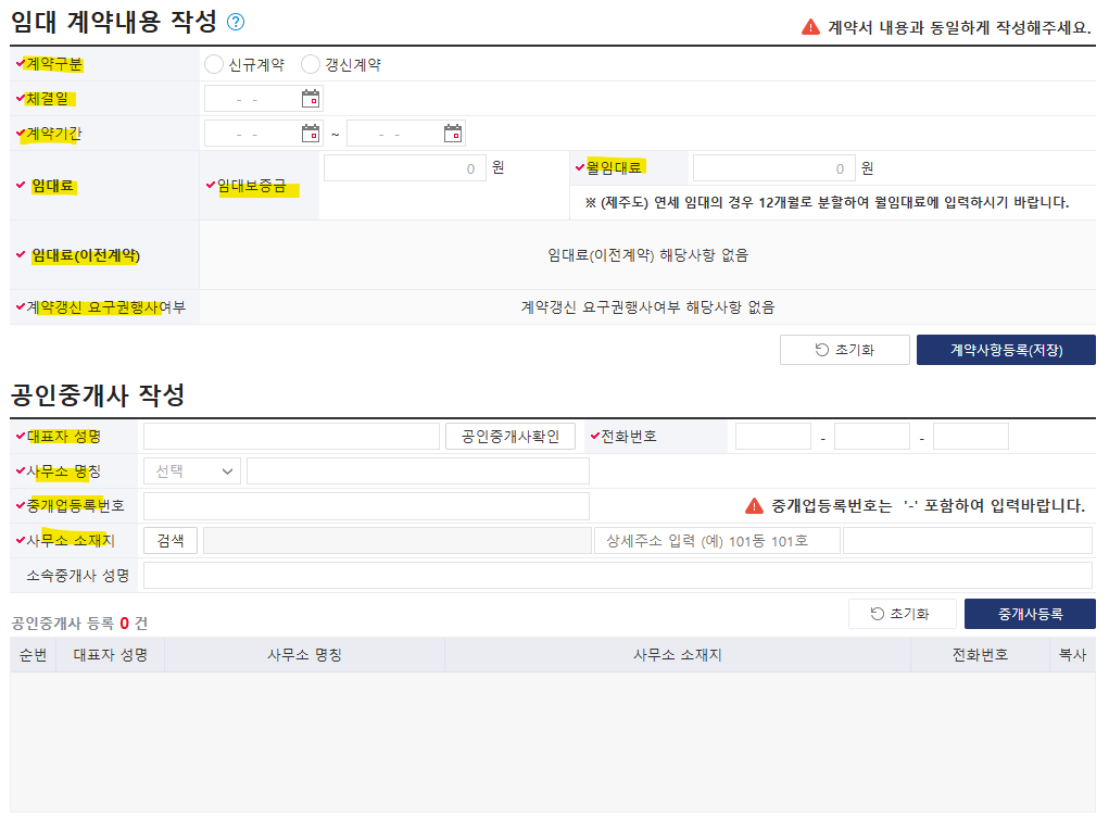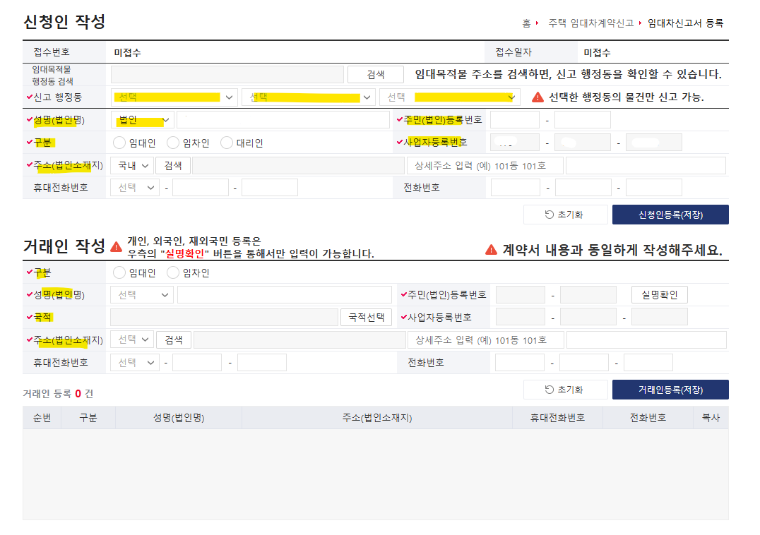 * 거래인 작성란에는 임대인, 임차인 모두 등록해야해요.