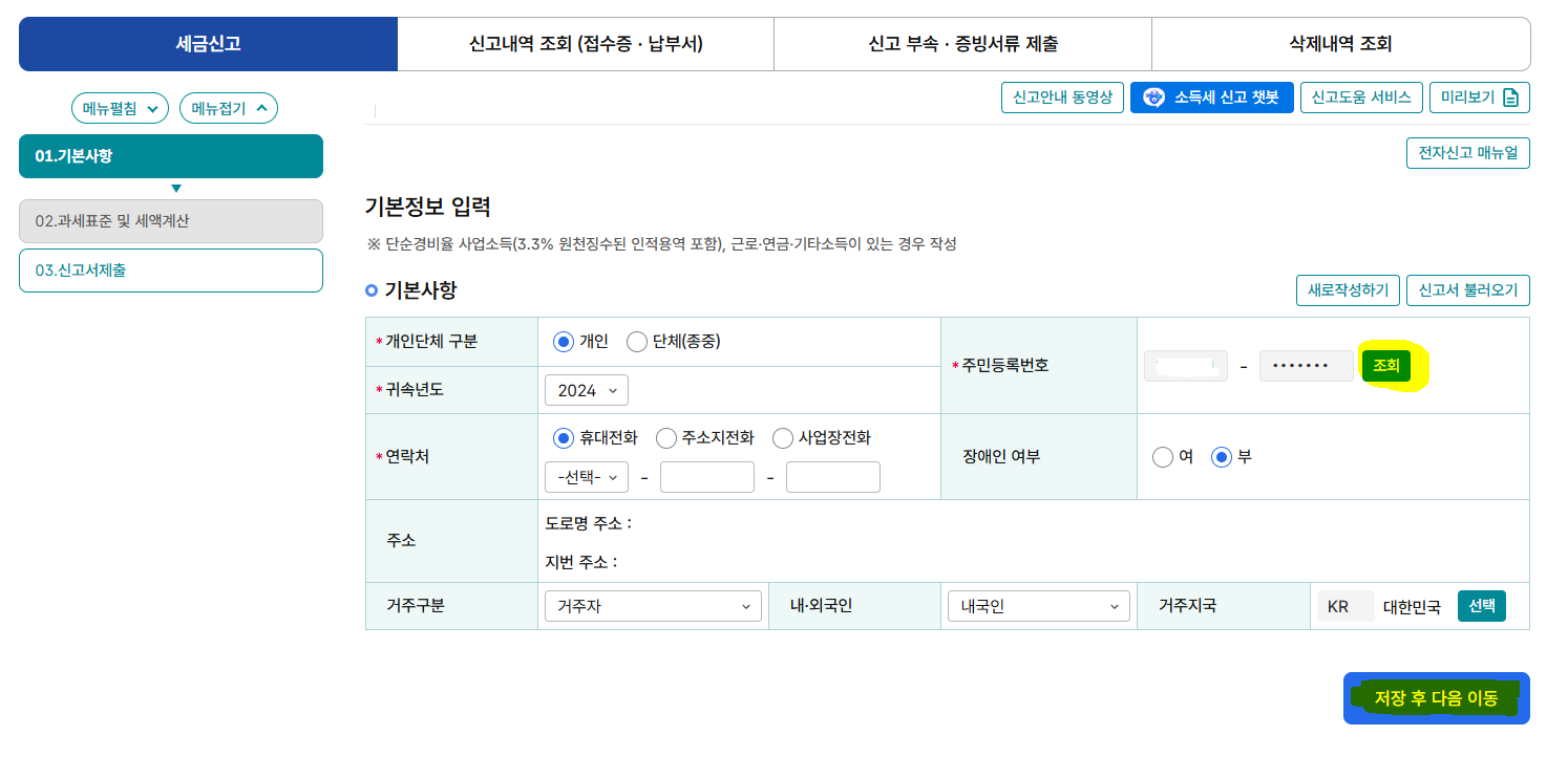 - 국세청이 자동으로 채운 소득금액, 원천징수세액 등을 확인